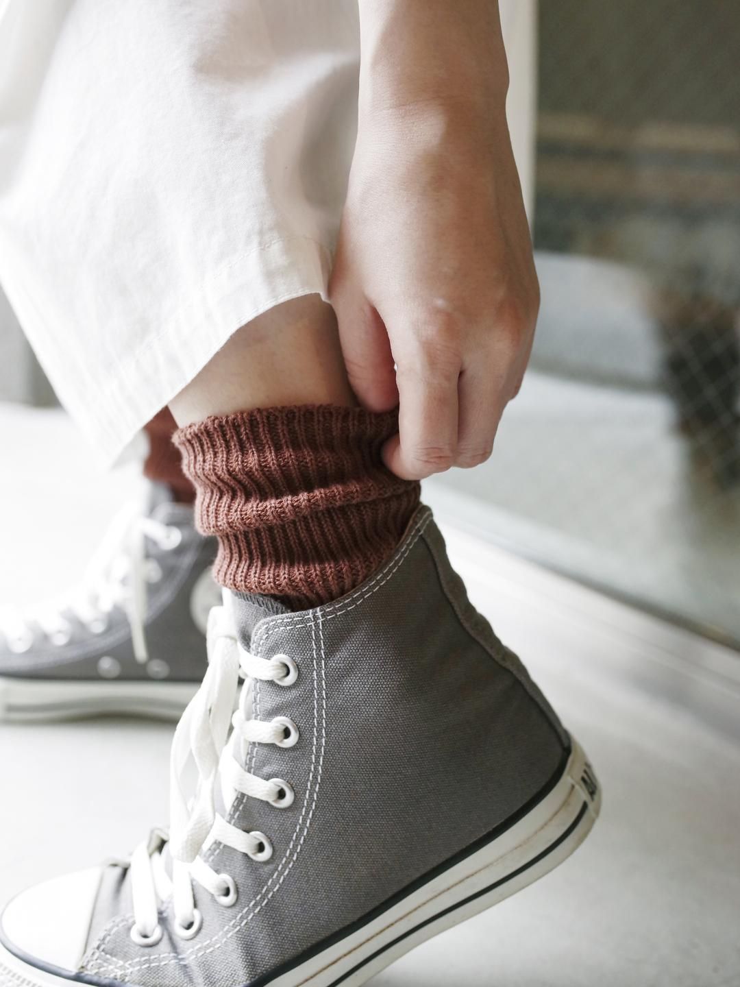 履き口を軽く1cmほど折り、好みの位置まで折り返すと